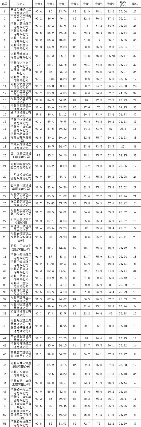 第二中標候選人:河北鴻志建筑安裝工程有限公司;