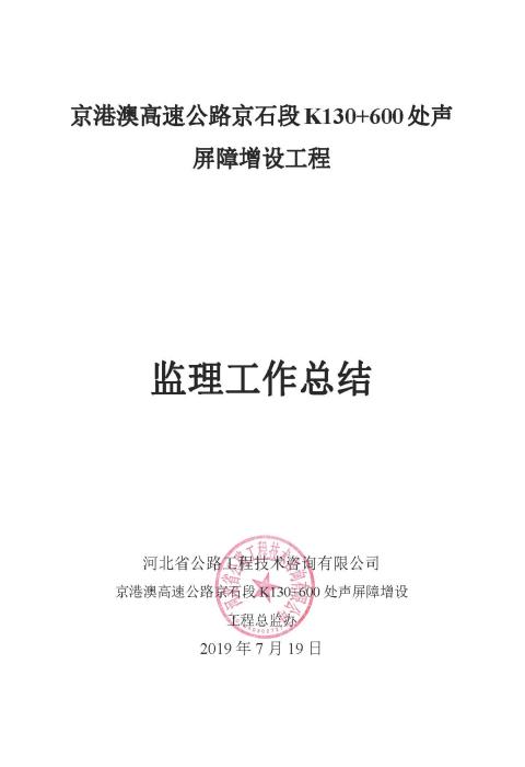 K130+600 處聲 屏障增設(shè)工程監(jiān)理報告