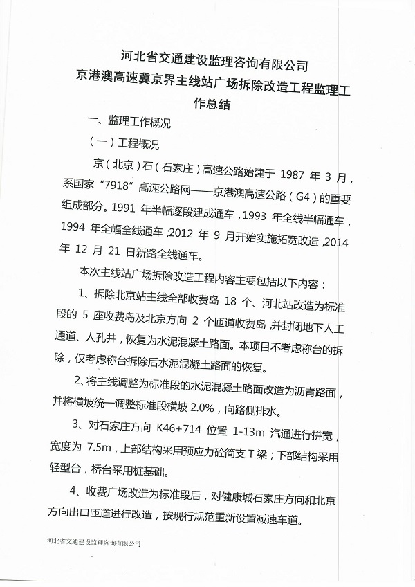主線站拆除改造工程監(jiān)理工作結(jié)
