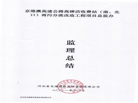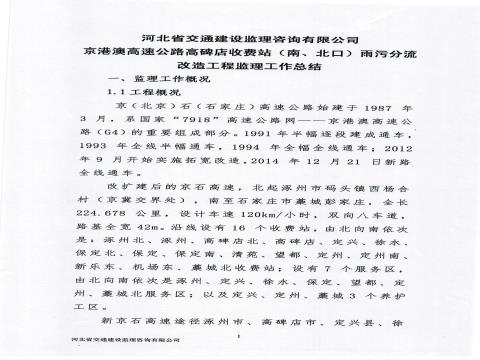 京港澳高速公路高碑店收費站(南、北口)雨污分流改造工程監(jiān)理工作總結(jié)