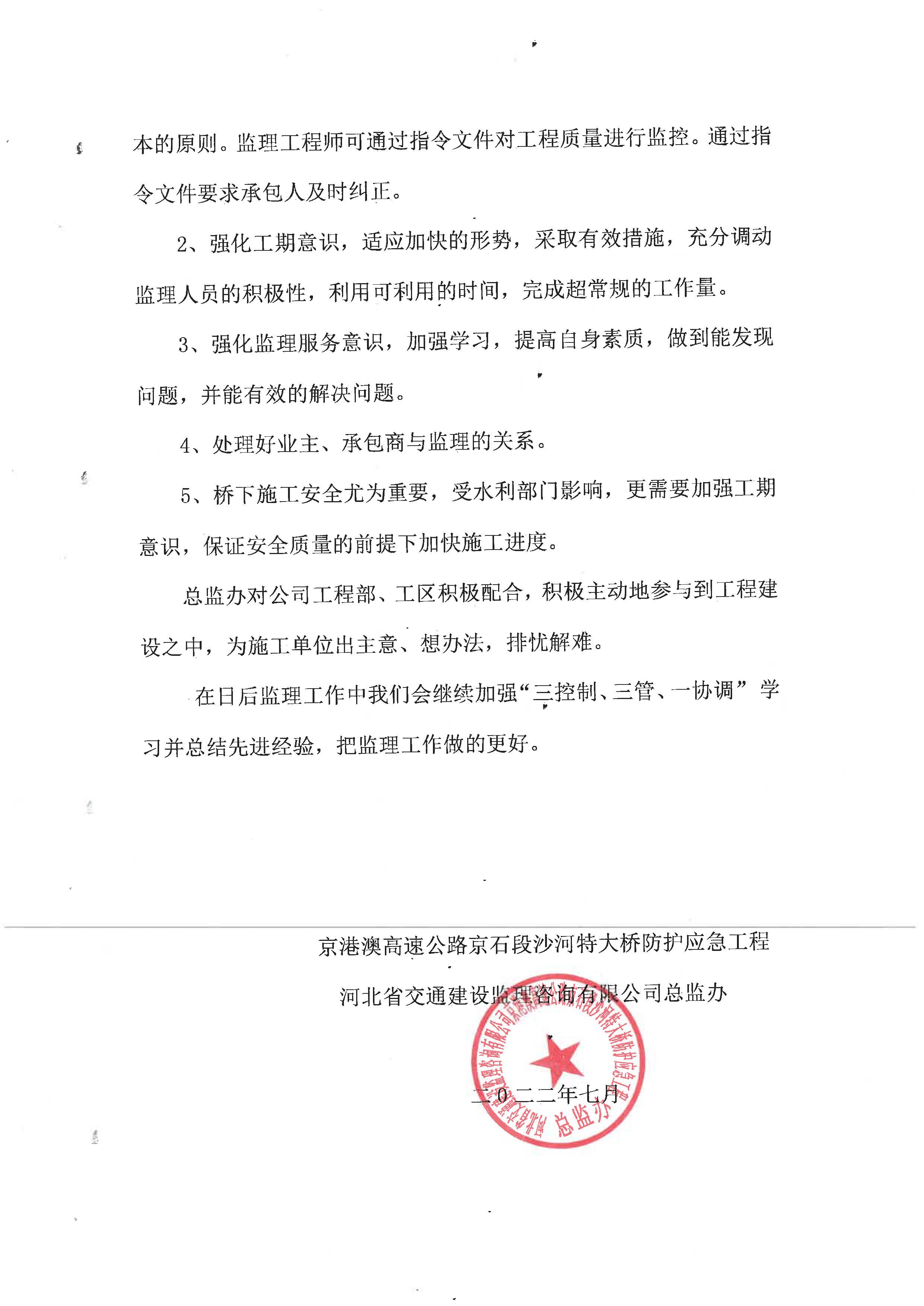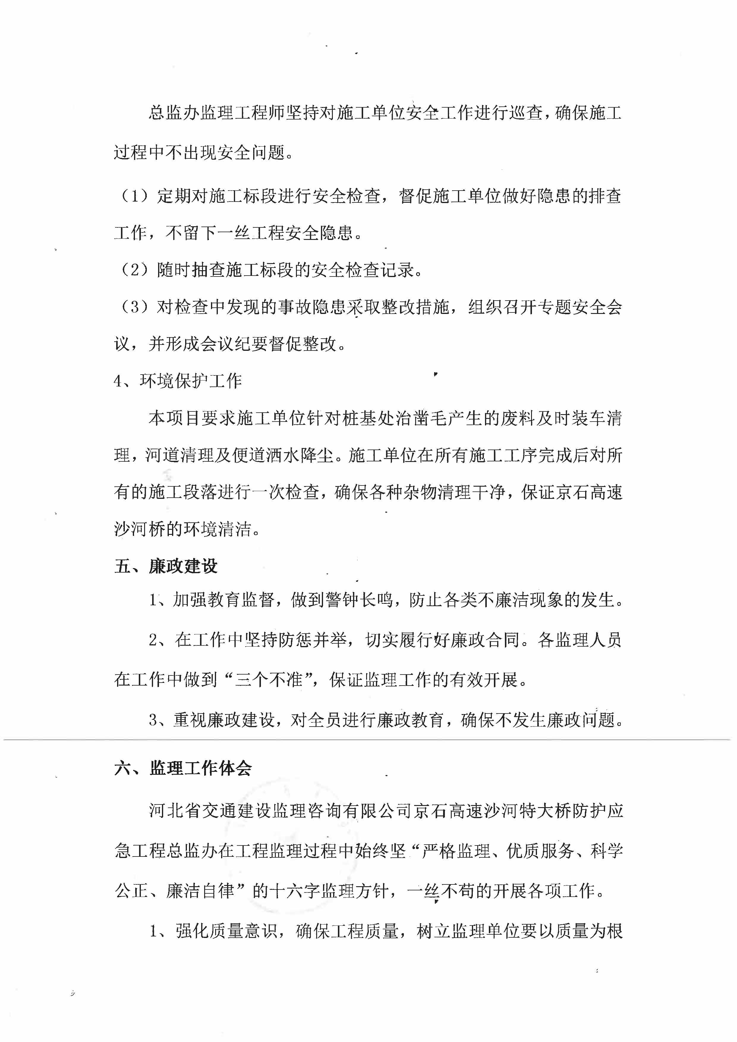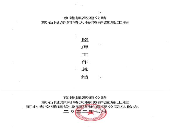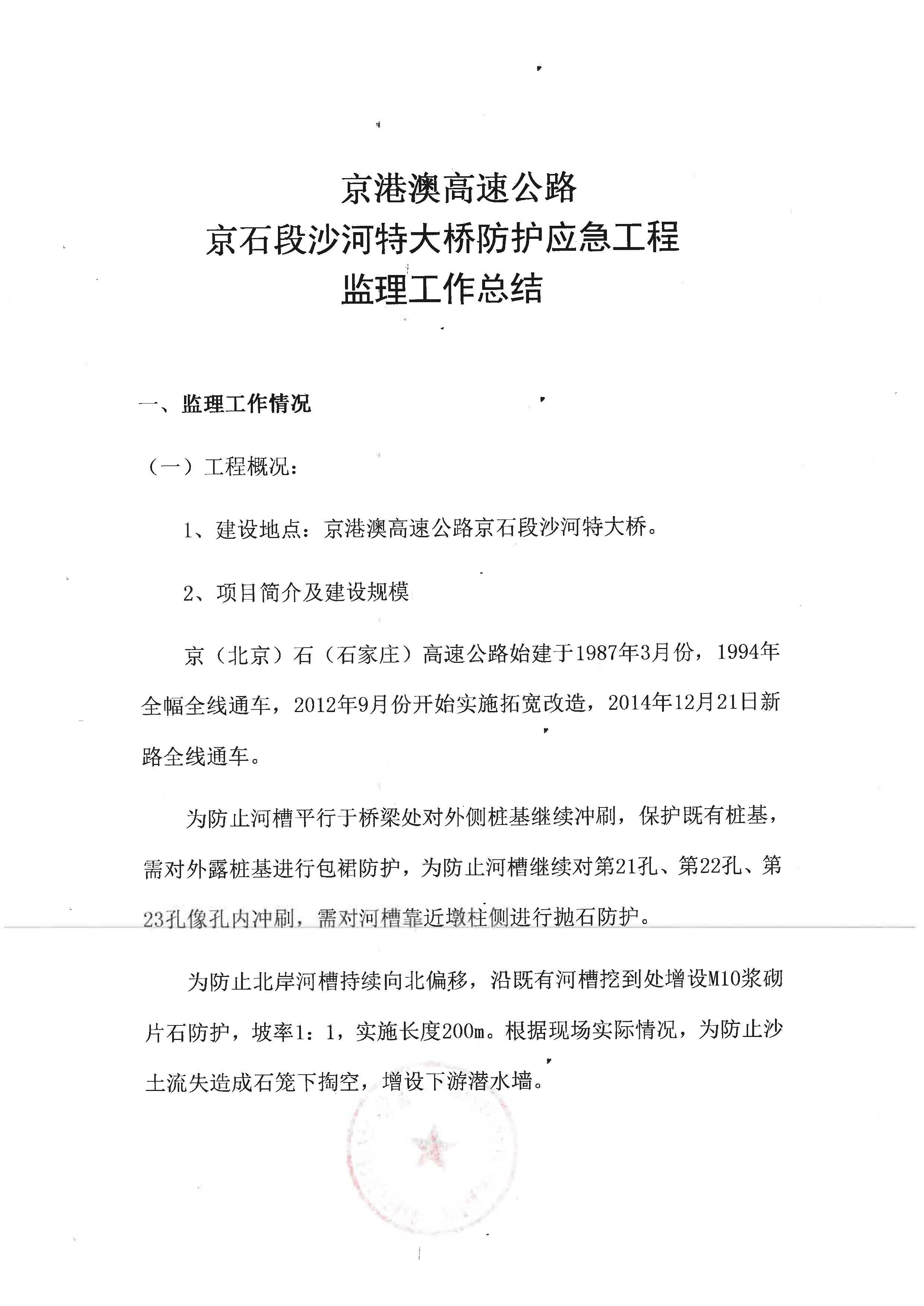 京港澳高速京石段沙河特大橋防護應(yīng)急工程監(jiān)理報告
