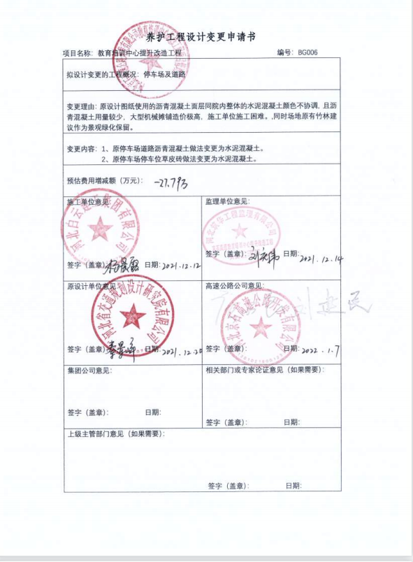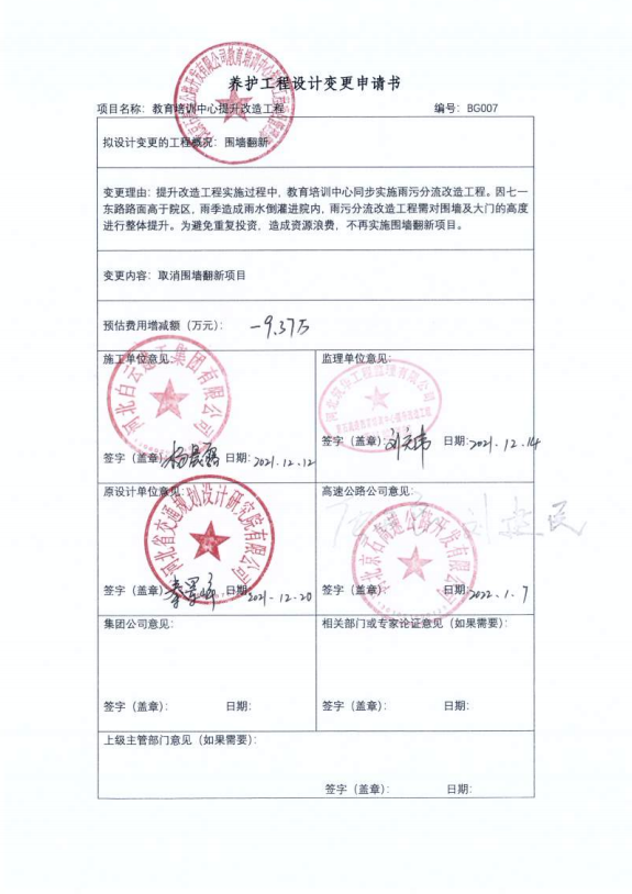 河北京石高速公路開(kāi)發(fā)有限公司教育培訓(xùn)中心提升改造工程二期設(shè)計(jì)變更