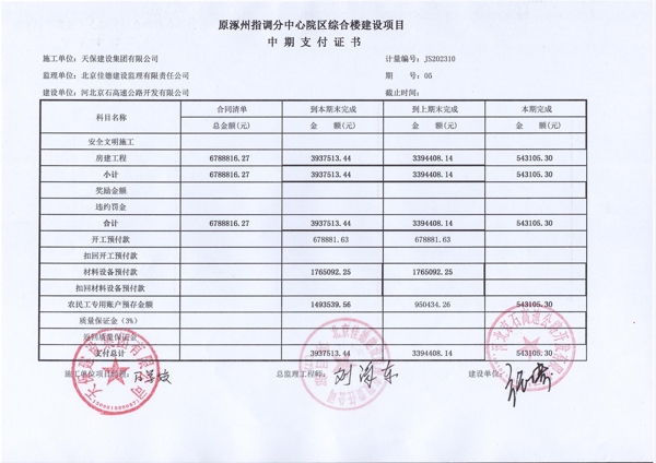 原涿州指調(diào)分中心院區(qū)綜合樓建設(shè)項目第五期中期支付證書