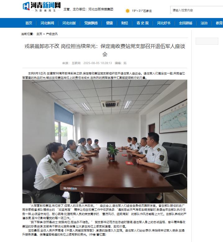【河青新聞網(wǎng)】戎裝雖卸志不改 崗位擔(dān)當(dāng)續(xù)榮光:保定南收費(fèi)站黨支部召開(kāi)退伍軍人座談會(huì)