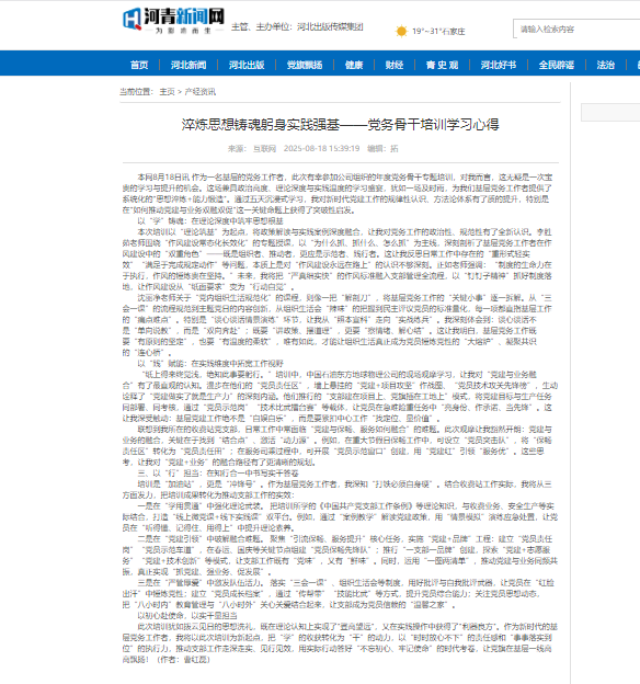 【河青新聞網(wǎng)】淬煉思想鑄魂躬身實踐強基——黨務骨干培訓學習心得
