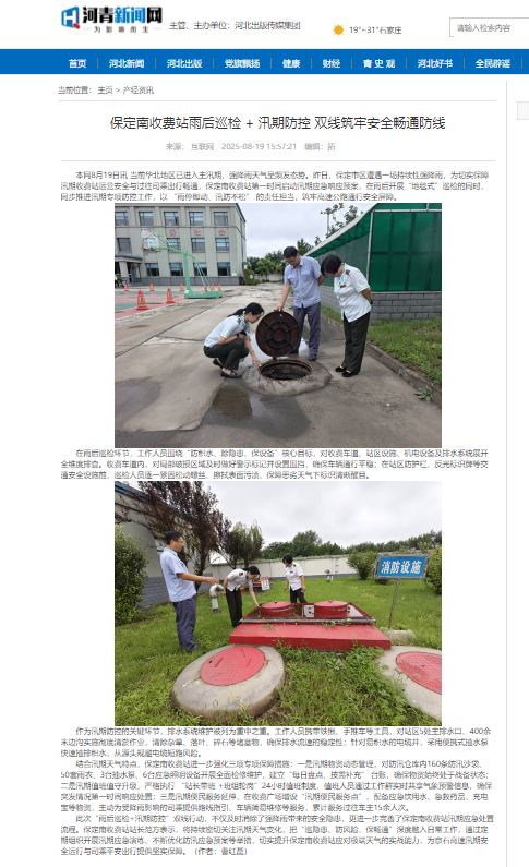 【河青新聞網(wǎng)】保定南收費(fèi)站雨后巡檢 + 汛期防控 雙線筑牢安全暢通防線