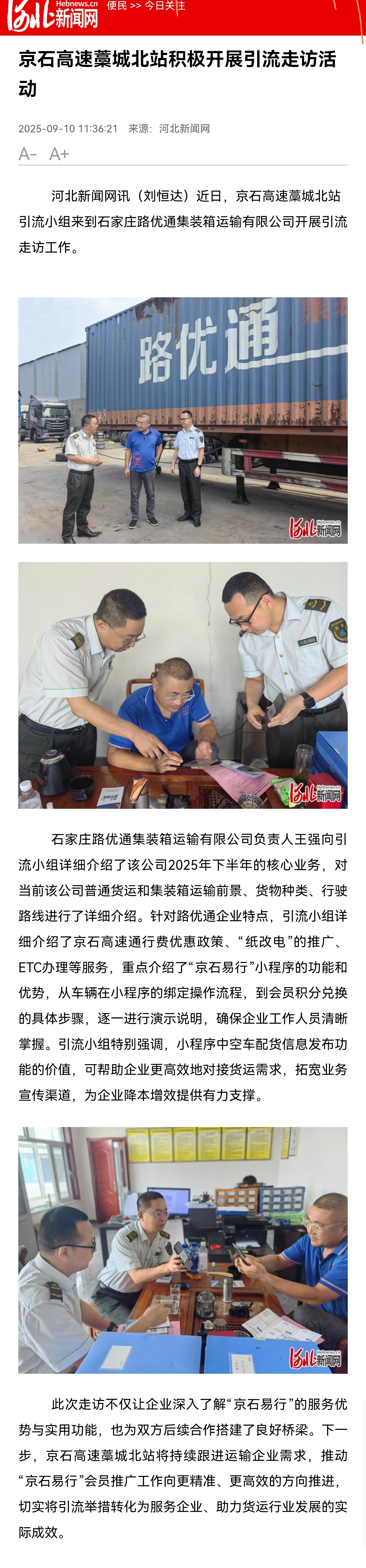 【河北新聞網(wǎng)】京石高速藁城北站積極開展引流走訪活動