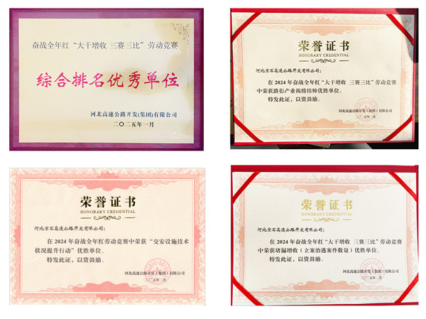 經(jīng)過角逐比拼,京石公司榮獲了高開集團(tuán)“交安設(shè)施技術(shù)狀況提升行動(dòng)”競賽優(yōu)勝單位(第一名);“大干增收 三比三賽”競賽優(yōu)秀單位(第一名);“堵漏增收”優(yōu)勝單位(第一名);“路衍產(chǎn)業(yè)揭榜掛帥”優(yōu)勝單位(第一名);多名職工分獲相應(yīng)競賽項(xiàng)目的優(yōu)秀個(gè)人。