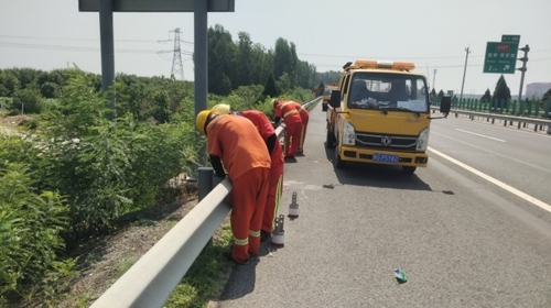 7月19日,京石公司再次詢問了保阜公司兩波鋼護(hù)欄板墊塊的修復(fù)情況,保阜公司表示需要更多人員的援助,在保障養(yǎng)護(hù)工作順利開展的情況下,京石公司統(tǒng)籌定興工區(qū)和藁城工區(qū)的技術(shù)人員繼續(xù)馳援保阜公司施工修復(fù)現(xiàn)場。