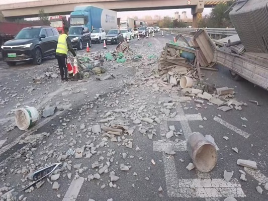 5月1日凌晨5點(diǎn),第二養(yǎng)護(hù)工區(qū)接智調(diào)中心通知,北京方向146路段發(fā)生貨車側(cè)翻事故,貨物散落導(dǎo)致三車道堵塞,正值“五一”假期首日,交通疏導(dǎo)壓力驟增。