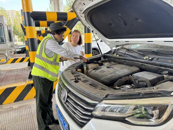 “當時情況挺緊急的,我看到水箱冒煙,第一反應(yīng)就是先保障人員安全?!焙蚊利惢貞浀馈K敊C立斷,緊急關(guān)閉了該車輛所在的車道,避免后續(xù)車輛造成擁堵或次生事故。隨后,她迅速上前,引導(dǎo)車內(nèi)同乘人員全部下車,轉(zhuǎn)移到安全區(qū)域。隨后何站長并沒有停下腳步。她耐心地與司機溝通,了解車輛狀況,并協(xié)助司機打開引擎蓋。在她的協(xié)助下,司機很快明確了是水箱出現(xiàn)問題導(dǎo)致冒煙。何站長一邊安撫司機的情緒,一邊利用自己掌握的車輛應(yīng)急知識,幫助司機有效緩解了故障的惡化。