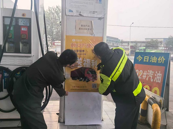 隨后,引流小組在海油加油站現(xiàn)場(chǎng)設(shè)立宣傳點(diǎn),向過(guò)往加油的貨車司機(jī)們積極宣傳“冀交萬(wàn)里行”貨車營(yíng)銷活動(dòng)。工作人員通過(guò)發(fā)放宣傳彩頁(yè)、現(xiàn)場(chǎng)講解、手把手指導(dǎo)注冊(cè)等方式,耐心向司機(jī)師傅們介紹小程序的注冊(cè)流程及使用方法,讓大家直觀感受到各項(xiàng)福利政策。同時(shí),引流小組還重點(diǎn)推廣了“空車配載”服務(wù),詳細(xì)解釋了該服務(wù)如何幫助司機(jī)快速匹配貨源、減少空駛里程、增加運(yùn)輸收入,實(shí)現(xiàn)“貨找車、車找貨”的高效匹配,真正做到“一站直達(dá)”的高效物流體驗(yàn)。