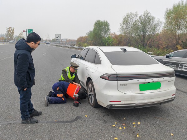 由于該車為新能源車型,未配備備胎,司機一時不知所措。工作人員耐心安撫其情緒,并協(xié)助聯(lián)系車輛4S店請求專業(yè)救援。在等待期間,工作人員全程值守,積極疏導周邊車流,確保救援區(qū)域安全有序。約30分鐘后,4S店救援人員抵達現(xiàn)場,收費站工作人員主動配合,協(xié)助完成輪胎更換作業(yè),幫助車輛恢復行駛條件。臨行前,司機對收費站工作人員熱情周到的幫助連連致謝。他表示:“在人生地不熟又突發(fā)狀況的時刻,能得到這樣及時、溫暖的幫助,真的非常感動。”