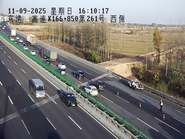 15時(shí)50分,在京石高速K166+850處,一輛大貨車因爆胎??啃熊嚨馈V腔壅{(diào)度中心的智能視頻監(jiān)測(cè)系統(tǒng)立即識(shí)別異常并自動(dòng)報(bào)警。監(jiān)控員接報(bào)后,迅速鎖定事件準(zhǔn)確位置,通過沿線情報(bào)板發(fā)布警示信息,并同步調(diào)度附近交警和救援車輛趕赴現(xiàn)場(chǎng)。