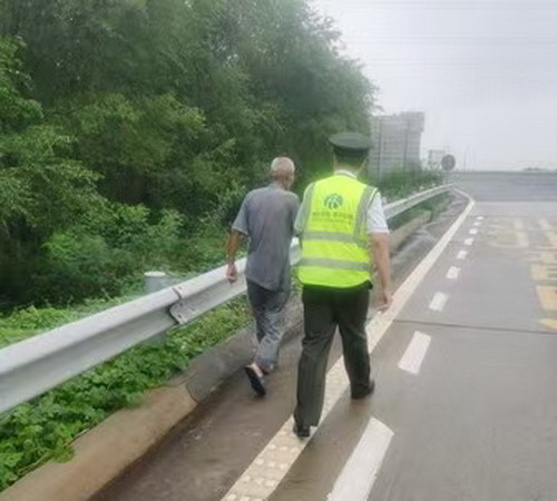 攔截行人的小王更“較真”?!按鬆?,高速公路不允許行人進(jìn)入。”他被曬得瞇起眼睛,卻堅(jiān)持原則:“安全底線不能破”。