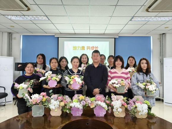 活動(dòng)以“春日來(lái)信 — 與花對(duì)話遇見(jiàn)更好的自己”為主題,于3月7日上午9點(diǎn)在會(huì)議室準(zhǔn)時(shí)拉開(kāi)帷幕。現(xiàn)場(chǎng)布置溫馨雅致,充滿了春日的氣息。18 位女職工齊聚一堂,在輕松愉悅的氛圍中開(kāi)啟了這場(chǎng)特別的活動(dòng)之旅。
