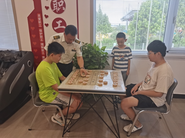 看護(hù)小組充分利用職工小家場(chǎng)地資源,精心規(guī)劃了多樣化的活動(dòng)內(nèi)容。在這里,既有安靜的學(xué)習(xí)角,志愿者們會(huì)耐心輔導(dǎo)孩子們完成暑假作業(yè),幫助他們攻克學(xué)習(xí)上的難題;也有充滿樂趣的互動(dòng)區(qū),孩子們可以跟著老師學(xué)下象棋,在楚河漢界的對(duì)弈中鍛煉思維、培養(yǎng)專注力;歌聲陣陣的才藝區(qū)更是熱鬧,孩子們跟著節(jié)奏學(xué)唱歌,在歡聲笑語中展現(xiàn)童真與活力。