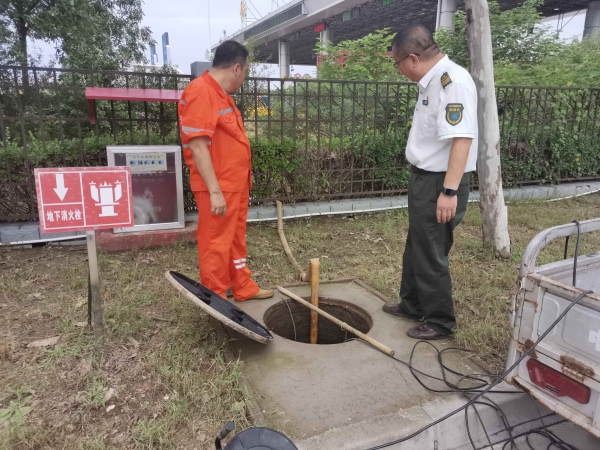 檢查過程中,發(fā)現(xiàn)院內(nèi)一消防井因雨后地面滲水出現(xiàn)積水現(xiàn)象。雨水滲透地表后,沿土壤間隙匯入井內(nèi),導(dǎo)致水位逐漸上升,若不及時處理,可能影響消防設(shè)施正常使用。對此,徐水收費站立即啟動應(yīng)急響應(yīng),調(diào)配抽水設(shè)備對積水消防井進行抽排作業(yè),安排專人實時監(jiān)測水位變化,確保積水在短時間內(nèi)清理完畢,保障消防井功能完好。