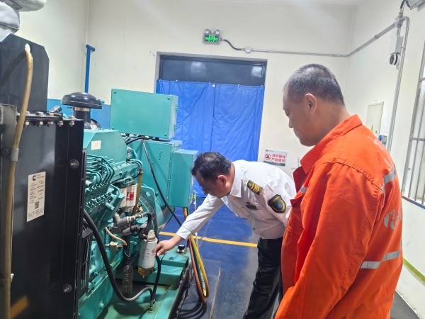 首先檢查柴油發(fā)電機(jī)房。發(fā)電機(jī)作為收費(fèi)站在突發(fā)停電情況下保障正常運(yùn)營(yíng)的關(guān)鍵設(shè)備,其運(yùn)行狀況至關(guān)重要。段青松副站長(zhǎng)和小組成員仔細(xì)檢查了發(fā)電機(jī)的狀態(tài),查看是否存漏油、漏防凍液現(xiàn)象等情況。同時(shí)對(duì)柴油儲(chǔ)備情況進(jìn)行了檢查,確保在節(jié)日期間有足夠的燃料供應(yīng)。此外還重點(diǎn)檢查了發(fā)電機(jī)房的通風(fēng)情況,保證良好的通風(fēng)條件。